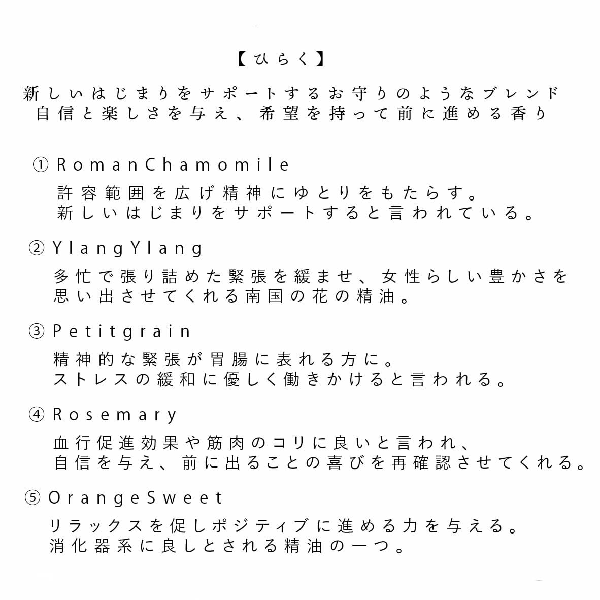 それぞれの香りに、言葉に沿う力のある植物の精油が使われています。