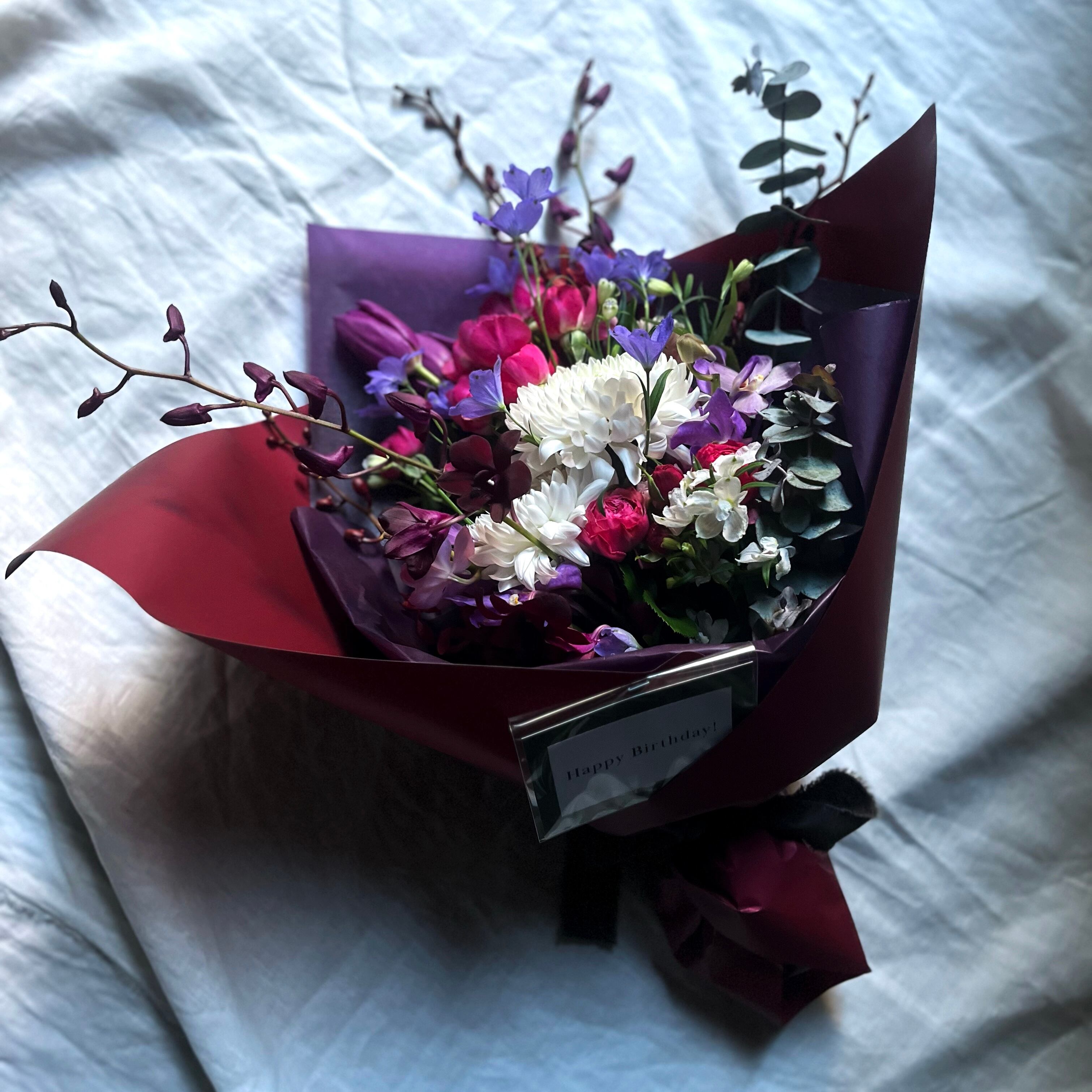 受注仕入れであることや、花による単価の違い、大幅な価格の変動、季節や気候・輸送環境などを考慮して、できるだけボリューム感のある、お贈り先へ合ったお花束にさせていただきたく、お花の細かな部分(種類や色)はお任せいただけますと幸いです。