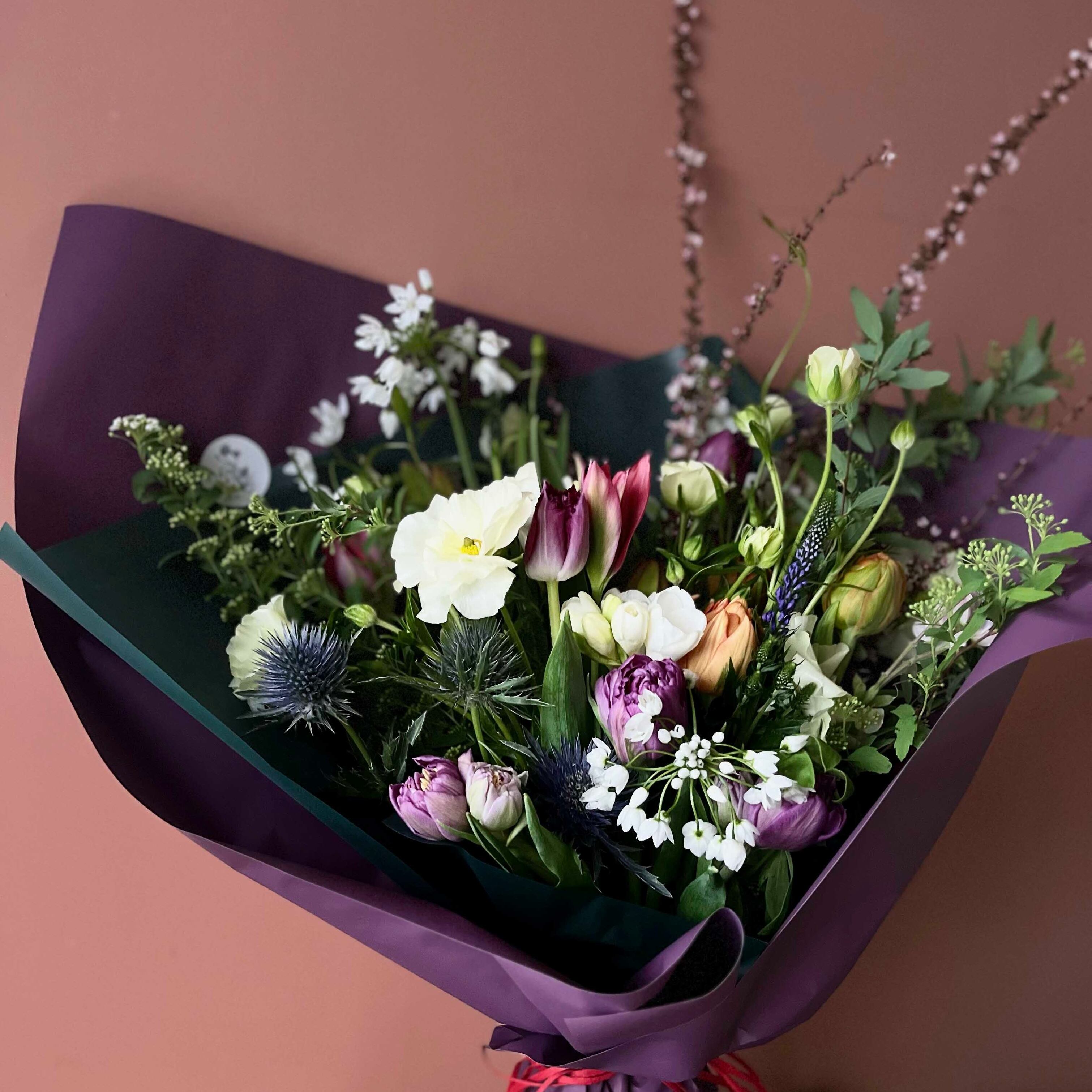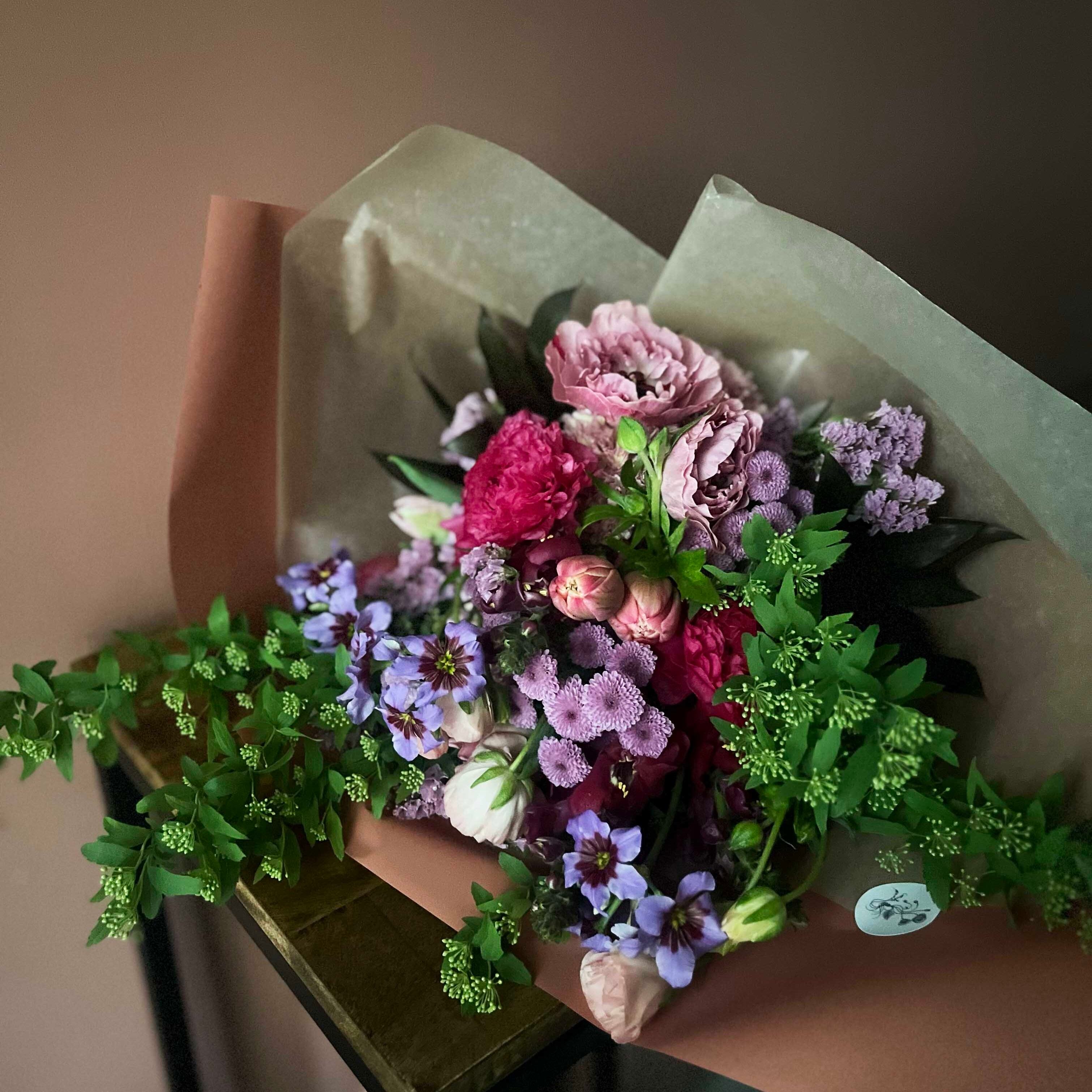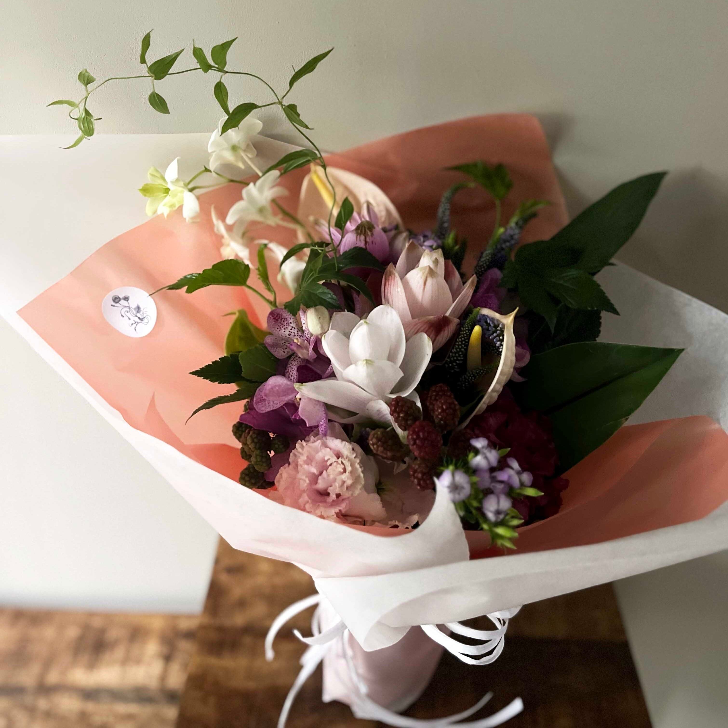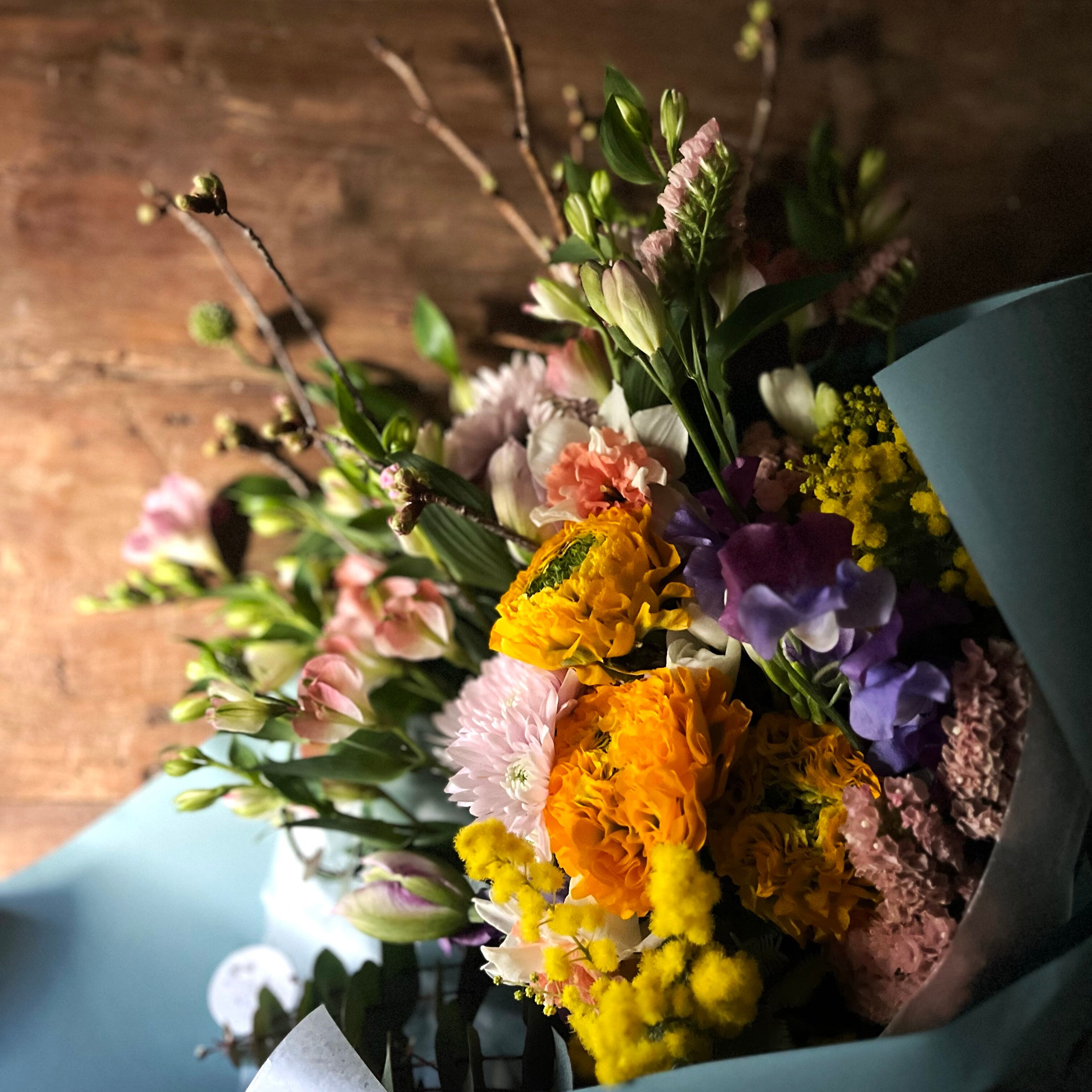 その雰囲気に、好きな色を混ぜ込み、お相手に合うような花束に仕上げさせていただきます。