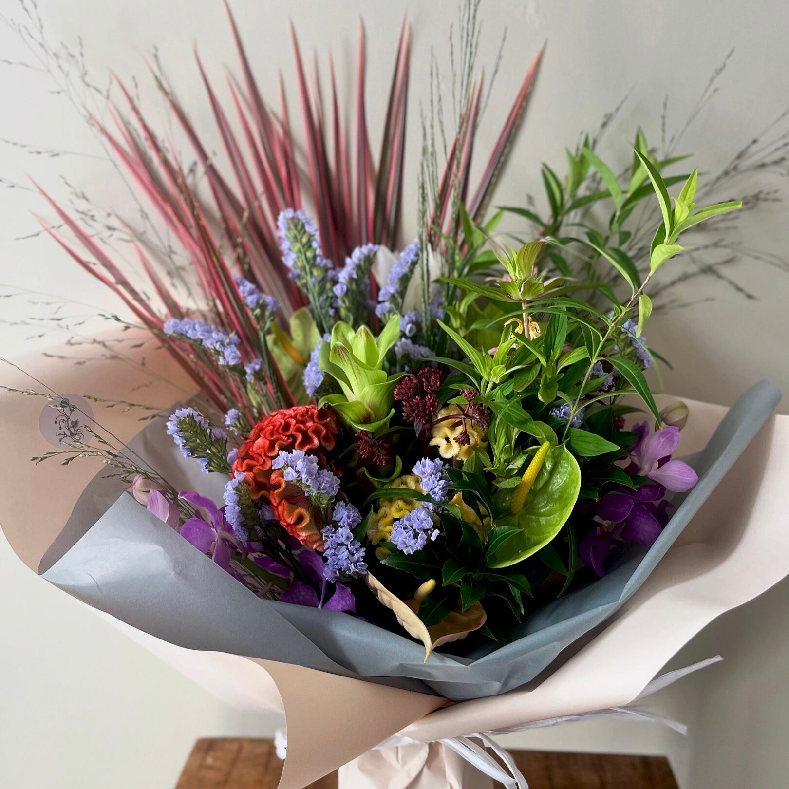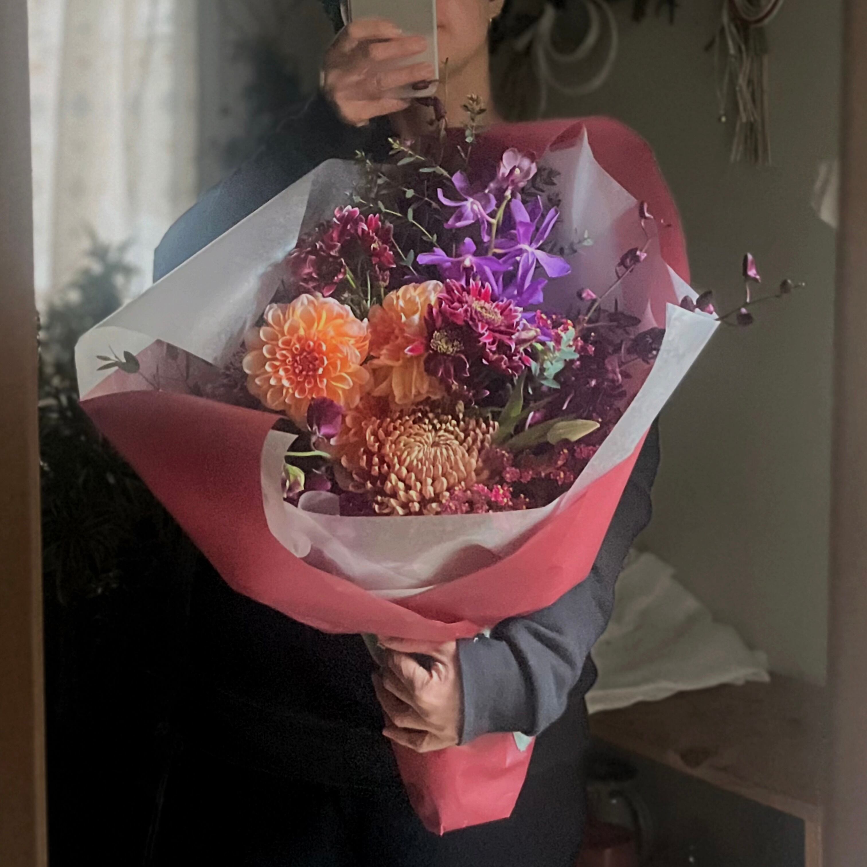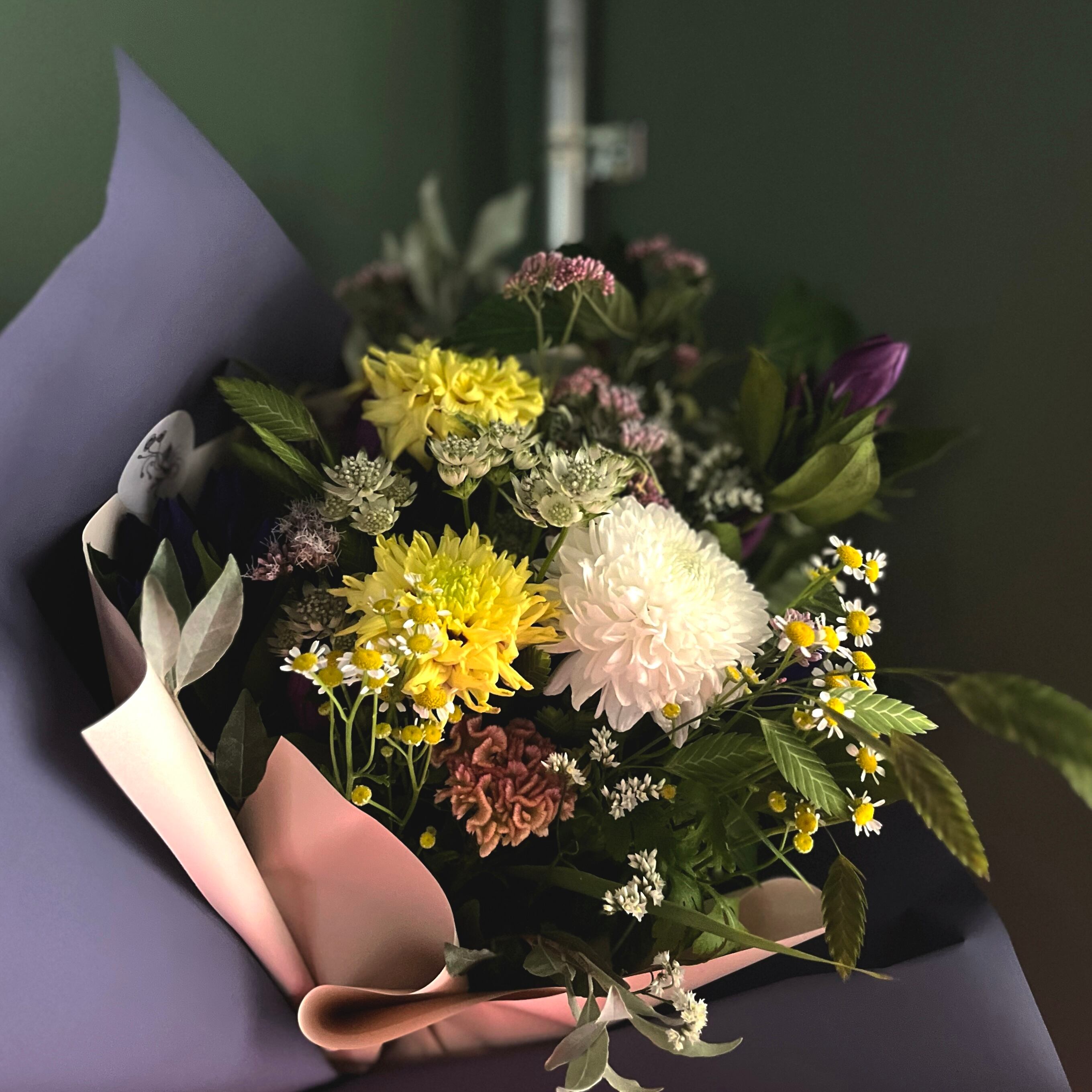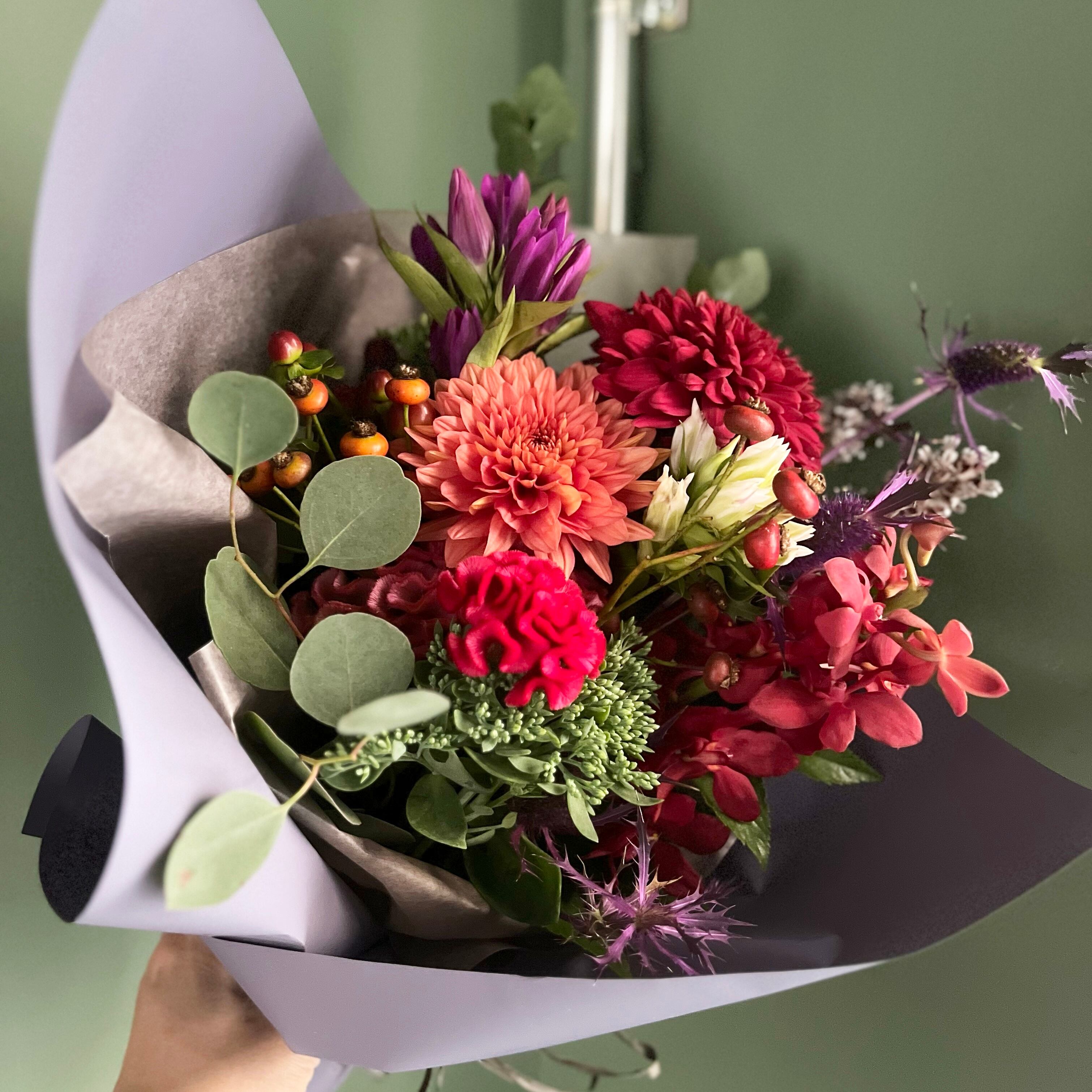 その雰囲気に、好きな色を混ぜ込み、お相手に合うような花束に仕上げさせていただきます。