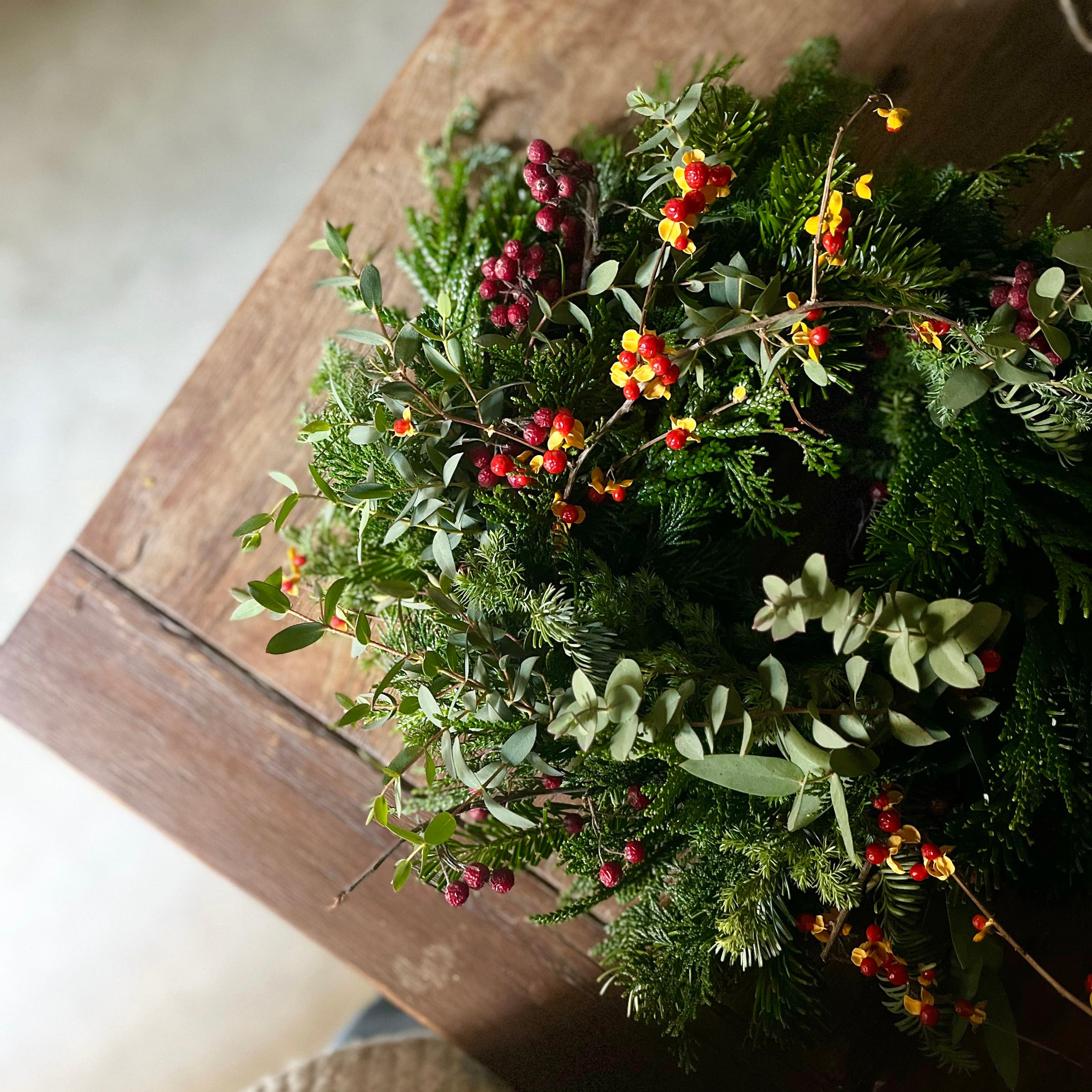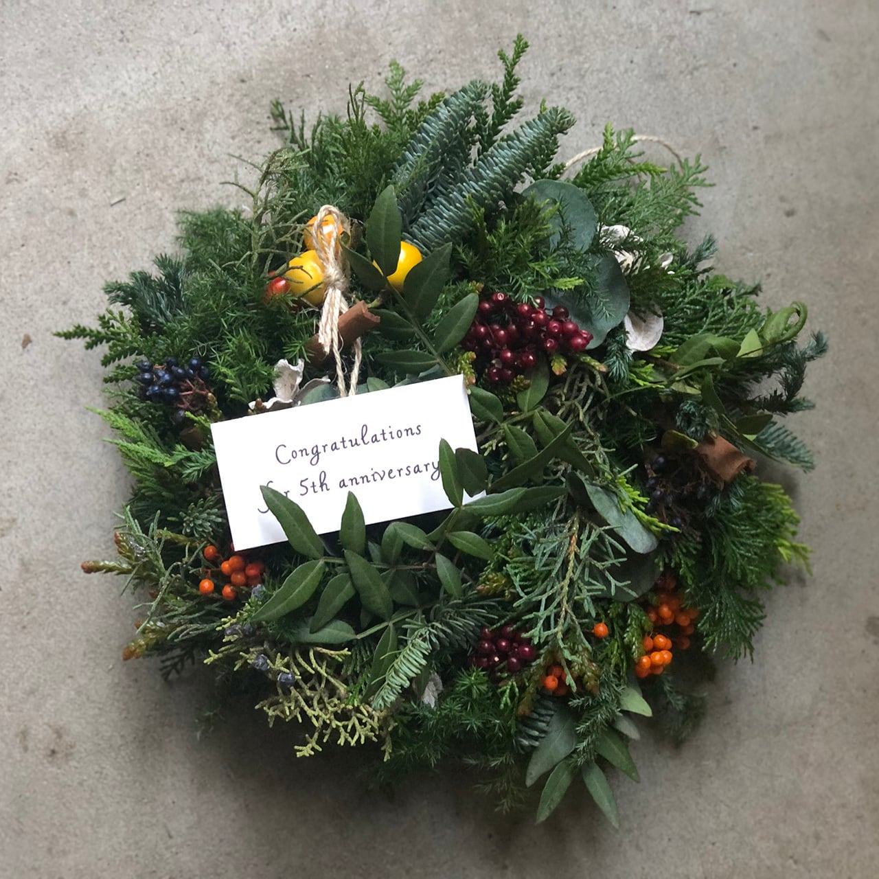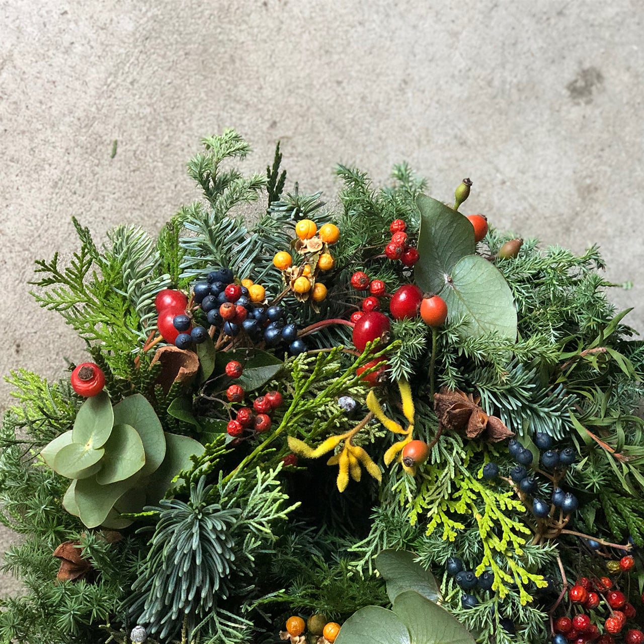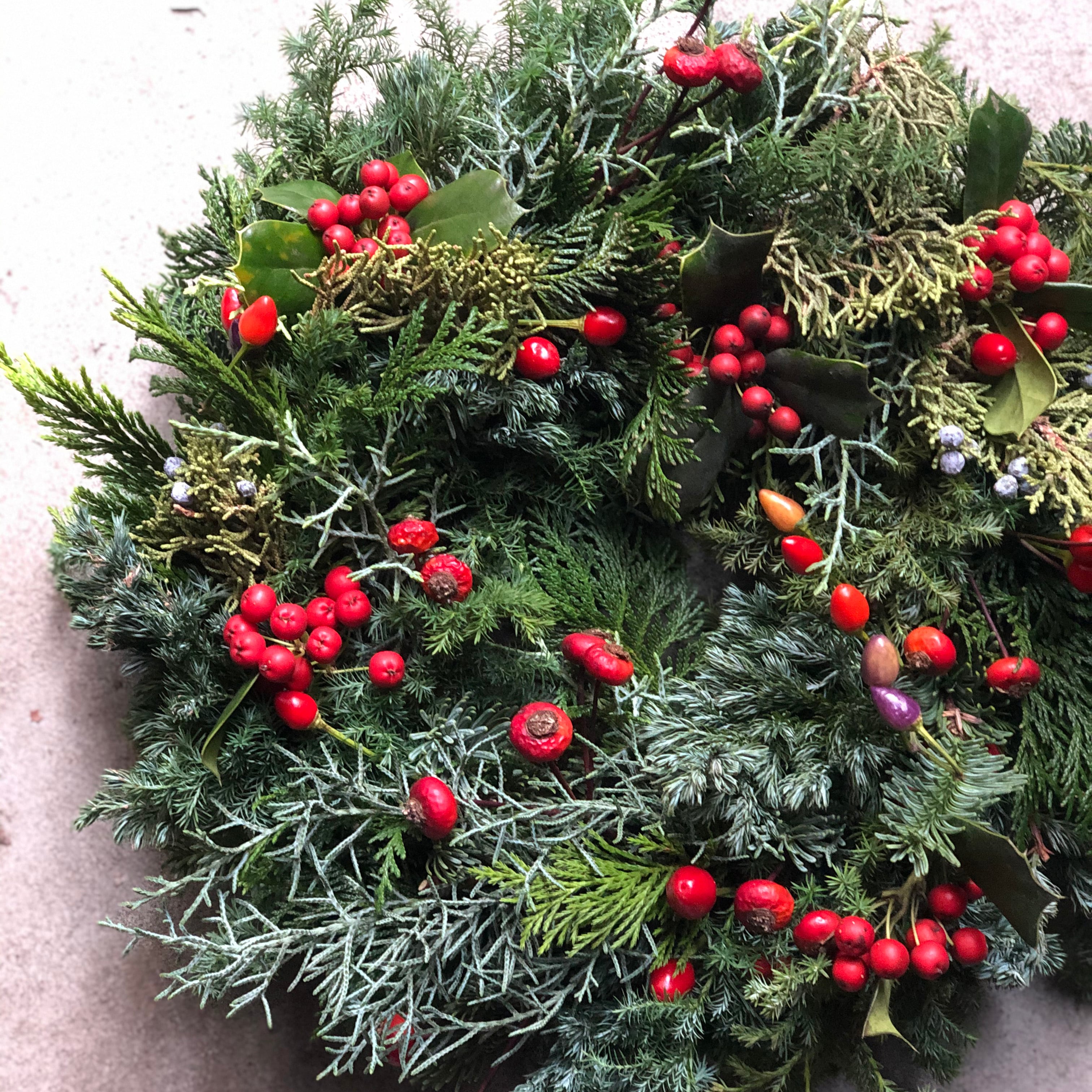備考欄にご希望の色や雰囲気などご記載ください(例:赤い実を入れて、フルーツや松ぼっくりをいれて など)。